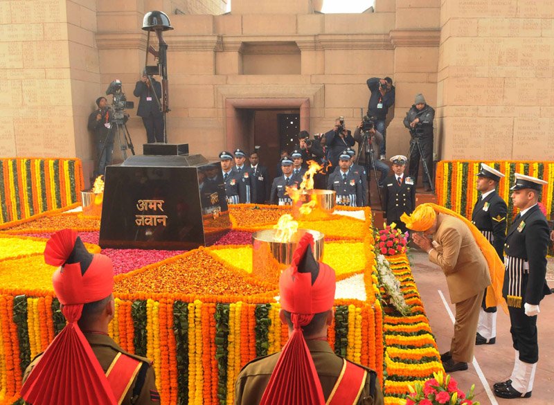 भोज के अवसर पर दिए भाषण में राष्ट्रपति श्री मुखर्जी ने कहा कि फ्रांस एक मात्र ऐसा देश है जिसे भारत के गणतंत्र दिवस समारोह में पांचवी बार मुख्य अतिथि बनने का गौरव प्राप्त हुआ है। फ्रांस का इंफ्रेंट्री दस्ता कल जब परेड में भारतीय सैनिकों के साथ कदम से कदम मिलाता हुआ मार्च करेगा तो एक बार फिर नए इतिहास का निर्माण होगा क्योंकि यह मार्च – पास्ट में भाग लेने वाला पहला विदेशी दस्ता होगा। यह केवल इतिहास नहीं है बल्कि यह हमारी दो सभ्यताओं और दोनों देशों की जनता के दरमियान गहरे संबंधों का प्रमाण होने के साथ-साथ हमारी दीर्घ कालीन रणनीतिक भागीदारी के लिए भी एक श्रद्धांजलि है। यह हमारे दो राष्ट्रों के उद्देश्य, समानता, स्वतंत्रता, भाईचारा और सत्यमेव जयते, शांति और न्याय के वैश्विक आदर्शों को प्राप्त करने के लिए विश्व को प्रोत्साहित करने हेतु मिलकर काम करने का भी प्रतीक है।
